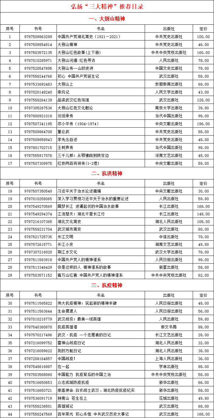 為助力全省學(xué)習(xí)好三大精神,為加快建成中部地區(qū)崛起的重要戰(zhàn)略支點(diǎn)提供強(qiáng)大精神力量,湖北省新華書店集團(tuán)精選相關(guān)圖書