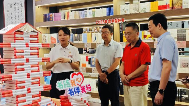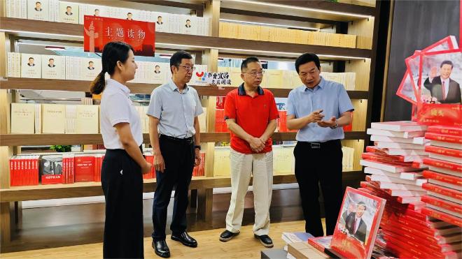 ,中國新聞出版廣電報總編輯丁以繡一行到宜昌市分公司屈原書城調(diào)研。宜昌市委宣傳部副部長劉革建