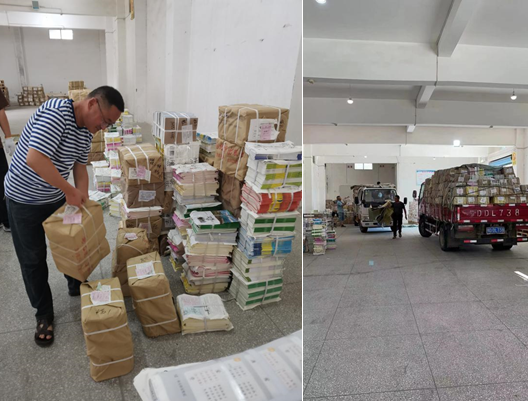 ,一輛輛滿載著暑假作業(yè)的貨車從分公司教材倉(cāng)庫(kù)出發(fā),有序駛向全市各鄉(xiāng)鎮(zhèn)學(xué)校