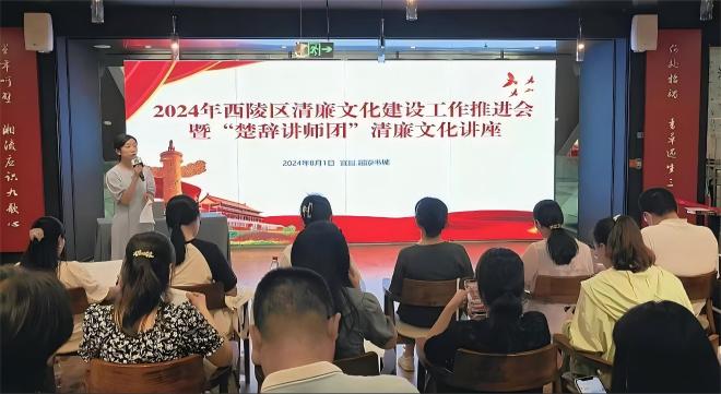 ,2024年宜昌市西陵區(qū)清廉文化建設(shè)工作推進(jìn)暨“楚辭講師團(tuán)”清廉文化講座活動在宜昌市分公司屈原書城舉行,區(qū)各機(jī)關(guān)單位負(fù)責(zé)人