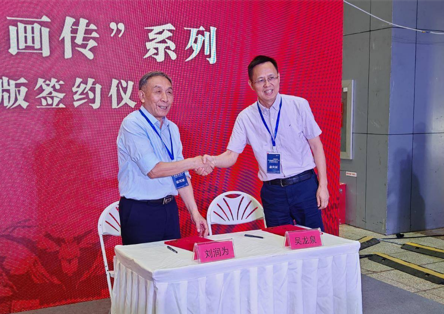 ,湖北美術(shù)出版社總編輯吳龍泉與中國(guó)紅色文化研究會(huì)會(huì)長(zhǎng)劉潤(rùn)為簽約
