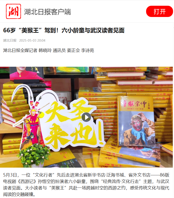 此次“經(jīng)典流傳·文化行走”六小齡童讀者見面會(huì),是湖北省新華書店集團(tuán)第三屆荊楚閱讀季的重要活動(dòng)之一