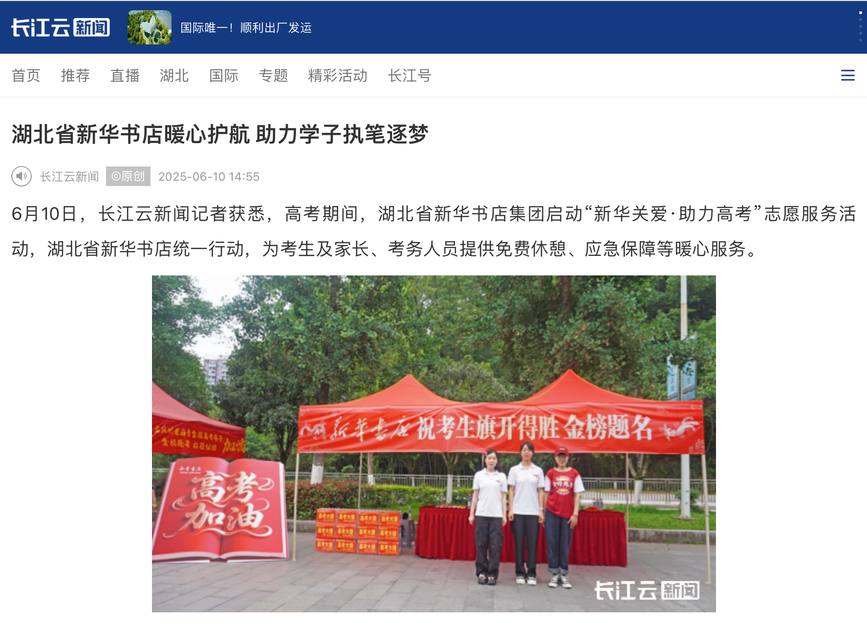,高考期間,湖北省新華書店集團(tuán)啟動(dòng)“新華關(guān)愛·助力高考”志愿服務(wù)活動(dòng)
