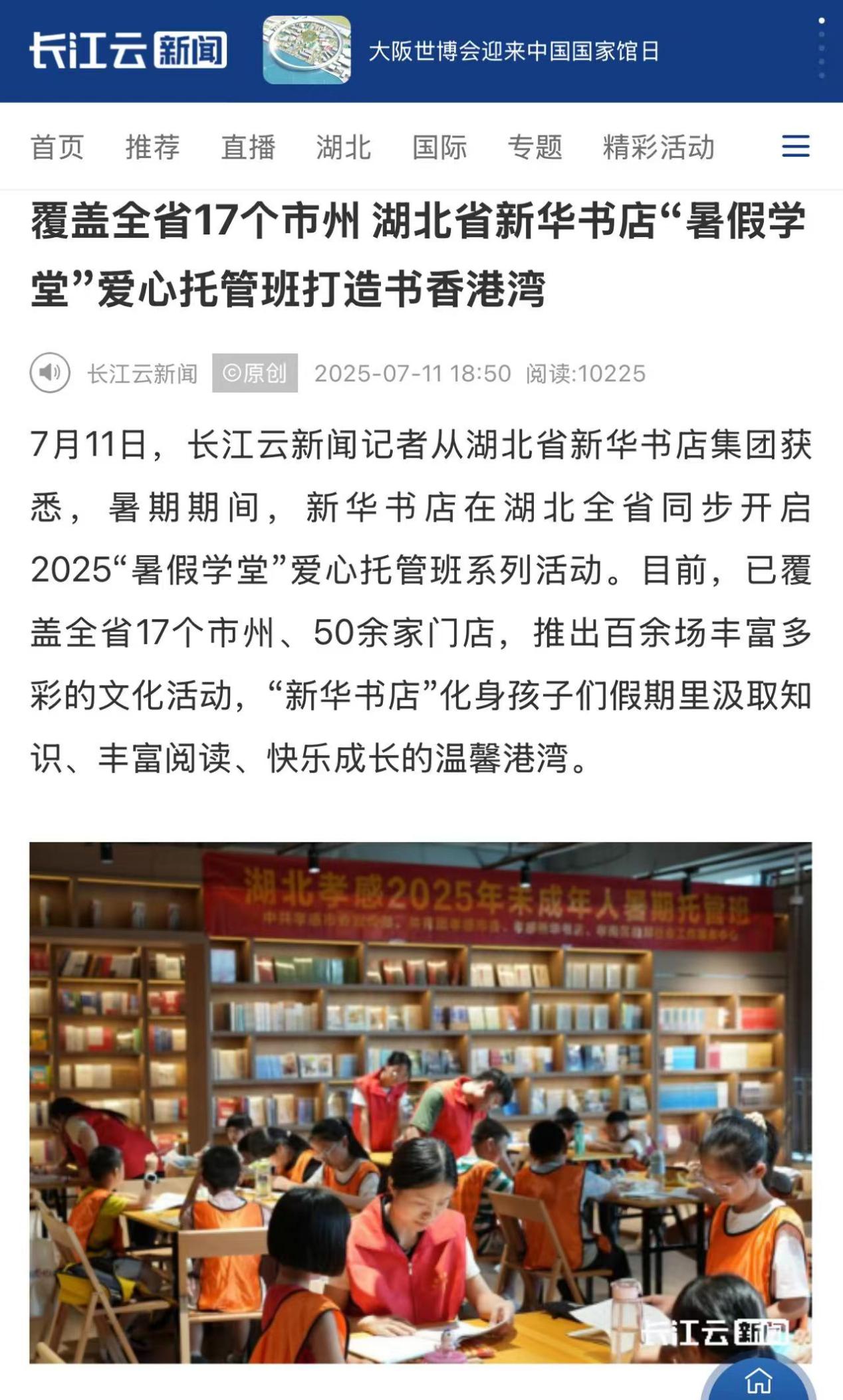 ,新華書店在湖北全省同步開啟2025“暑假學(xué)堂”愛心托管班系列活動。目前