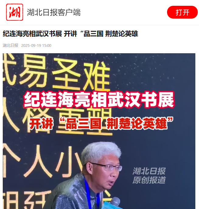 ,武漢書展暨第20屆華中圖書交易會“書香長江”閱讀周活動現(xiàn)場,知名學者紀連海帶來“品三國 荊楚論英雄”主題講座