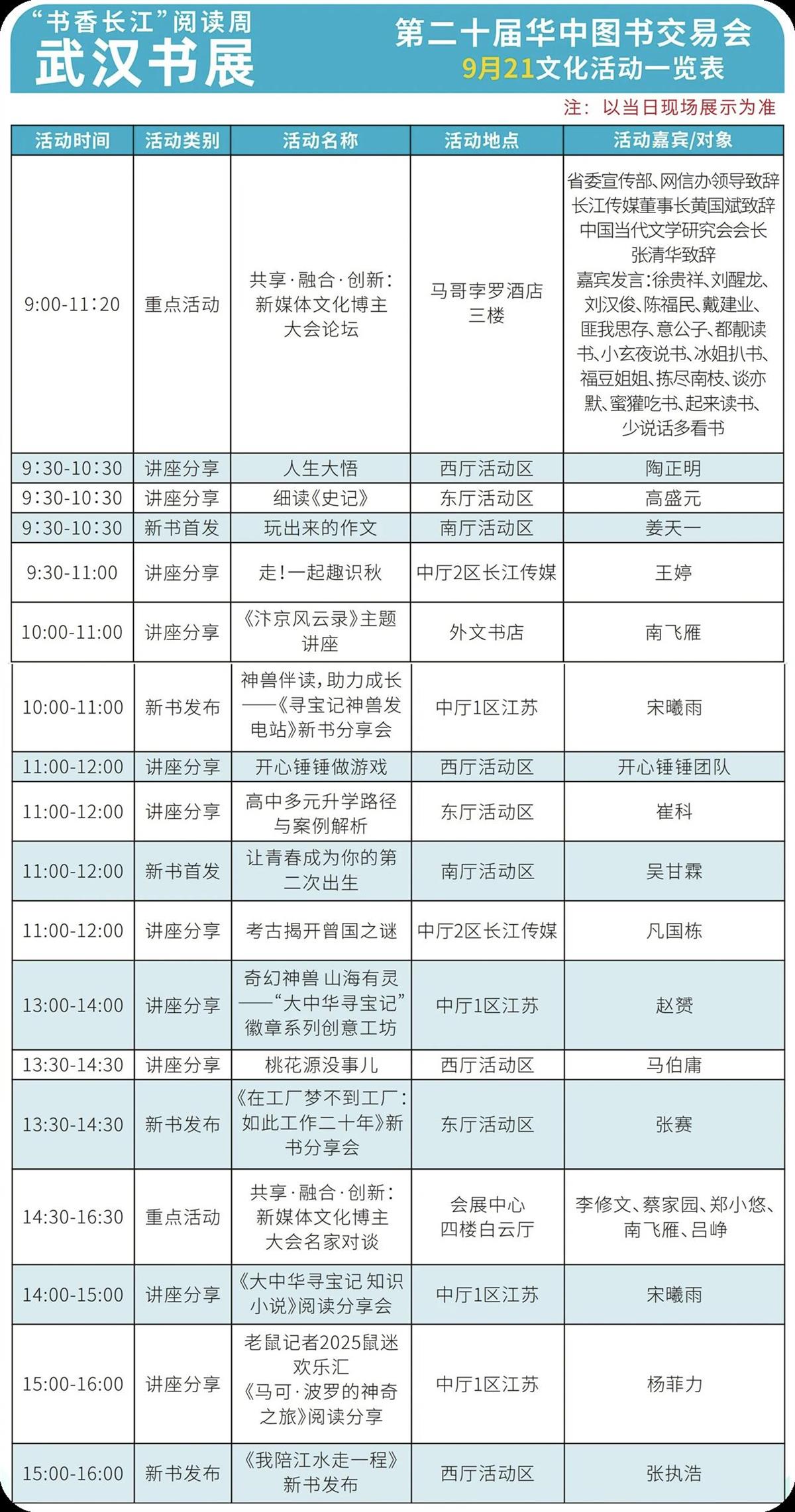 ,“書(shū)香長(zhǎng)江”閱讀周?武漢書(shū)展主會(huì)場(chǎng)活動(dòng)將持續(xù)至9月21日。為方便市民逛展